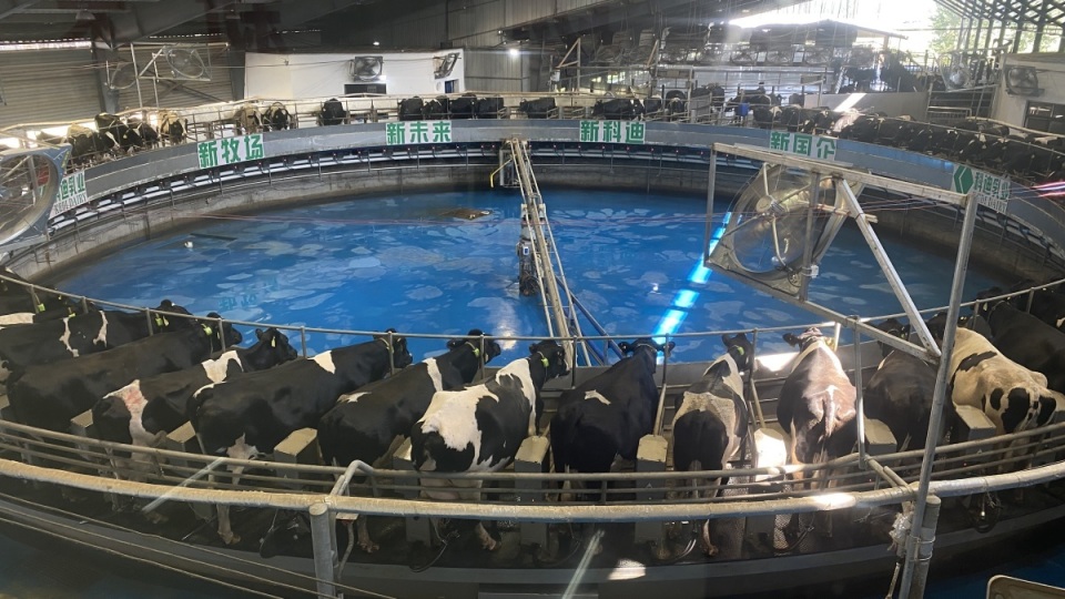 “这个转盘有80个挤奶位,每个位置正好站下一头牛,牛走上挤奶位后,挤奶设备会自动与奶牛对接,自动挤奶就正式开始了!”8月29日,在商丘市虞城县九州体育·中国有限责任公司智慧牧场,工作人员介绍着挤奶流程。